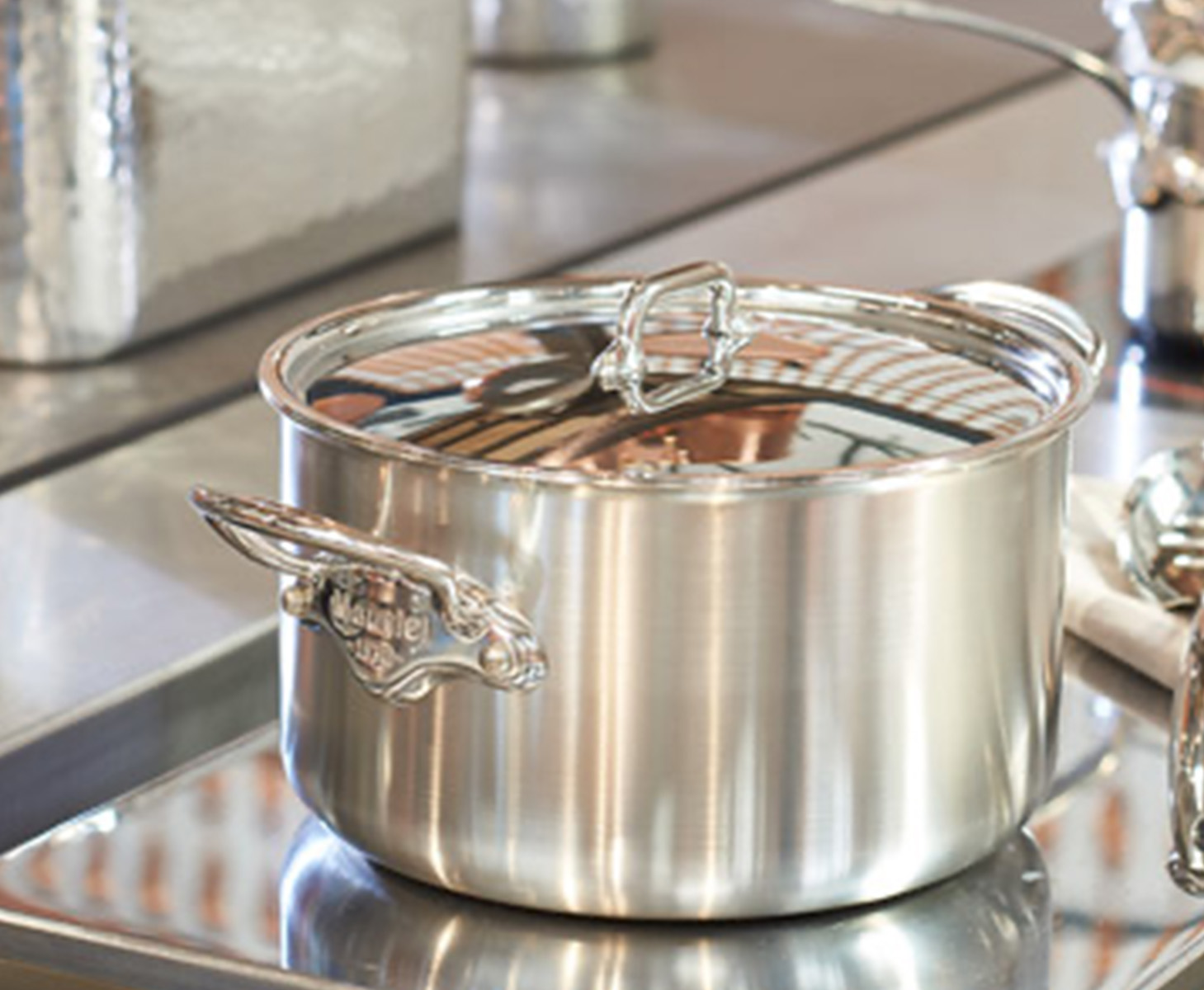 Mauviel 1830, has the ability to flourish and anticipate the culinary tendencies, while preserving its DNA. The goods, destined to professionals, were originally manufactured in copper, a noble material, by definition, the best of, the heat conductors. Far from sticking to the red metal, the company has found the ability to innovate and diversify, crafting with materials such as steel, cast iron, aluminium but mostly multi-layers stainless steel, which performances equal those of copper.