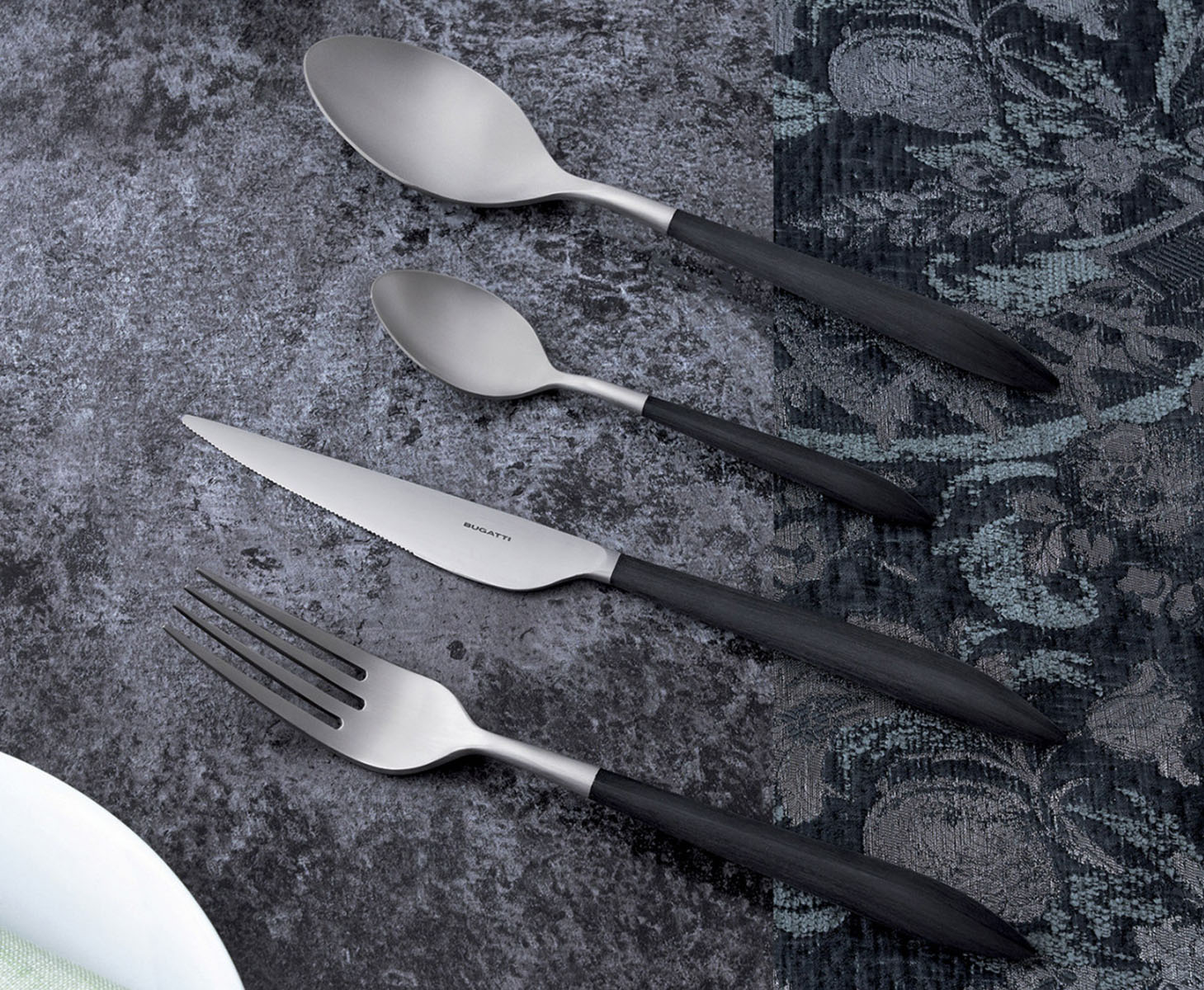 Bugatti designs and manufactures contemporary cutlery collections, table and kitchenware, thermal bottles and small but highly innovative kitchen appliances with a smart soul. In creating objects with an originally sophisticated style accompanied by a functional essence, the brand combines aesthetic research and technology with a distinguishing touch of Italianness, narrating a forward-facing philosophy that naturally embodies authentic territorial traditions.