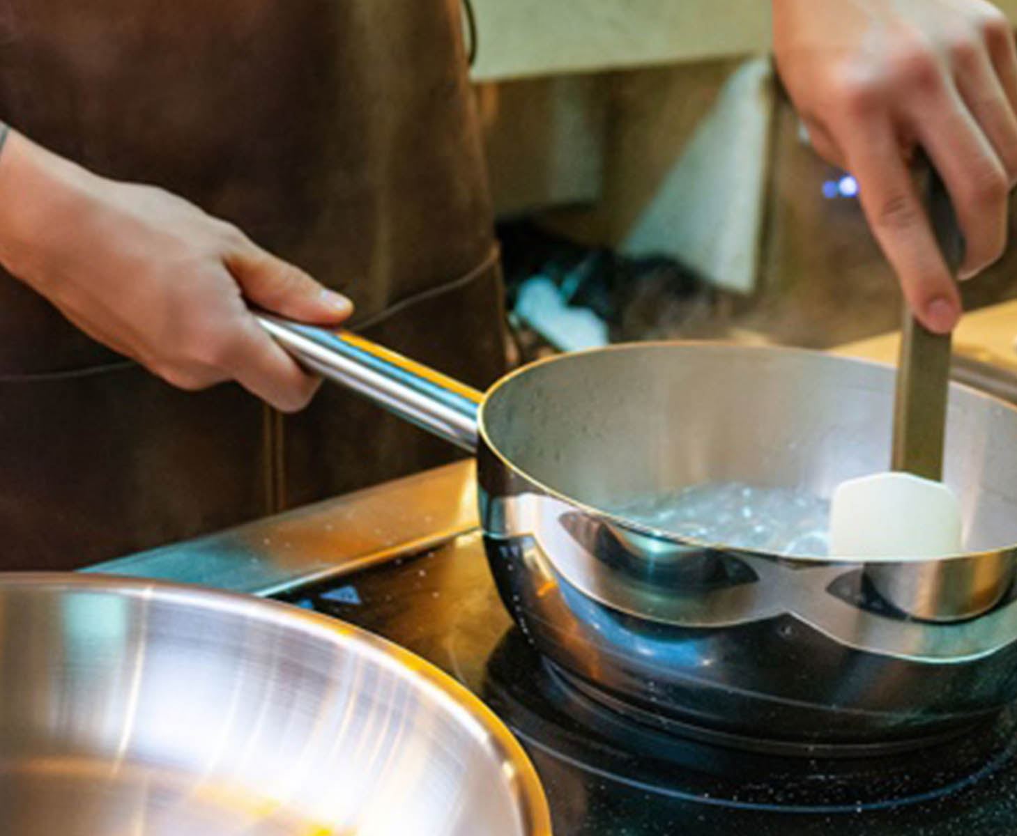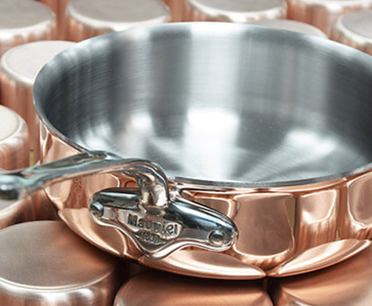 Mauviel 1830, has the ability to flourish and anticipate the culinary tendencies, while preserving its DNA. The goods, destined to professionals, were originally manufactured in copper, a noble material, by definition, the best of, the heat conductors. Far from sticking to the red metal, the company has found the ability to innovate and diversify, crafting with materials such as steel, cast iron, aluminium but mostly multi-layers stainless steel, which performances equal those of copper.